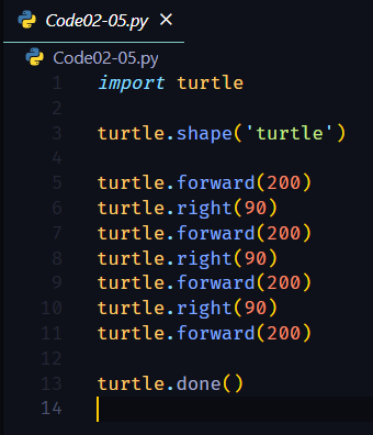파이썬 코드는 더욱 가관이었다. turtle과 같은 module의 경우 항상 노란색으로 Highlighting이 이루어졌었는데, 뭐가 모자란 것 마냥 잿빛 코드가 되어버렸다.